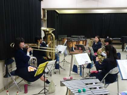 学年末考査が終了し、部活動も再開されています。吹奏楽部は金管パートが合わせていました。(遠藤)