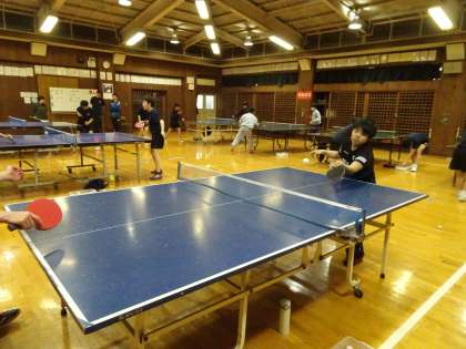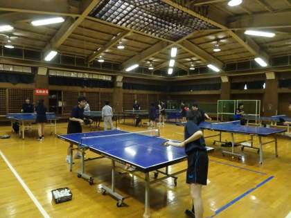 格技室では卓球部が活動しています。今日はツッツキの練習をしていました。(遠藤)
