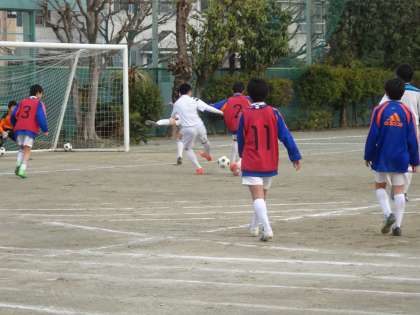 校庭ではサッカー部が活動しています。今日はゲーム形式の練習をしていました。(遠藤)