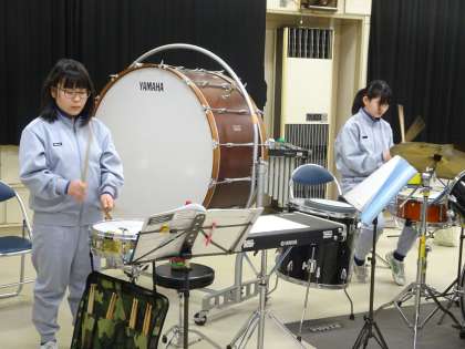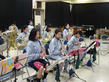 音楽室では吹奏楽部が活動しています。卒業式に向けて練習をしているようです。(遠藤)
