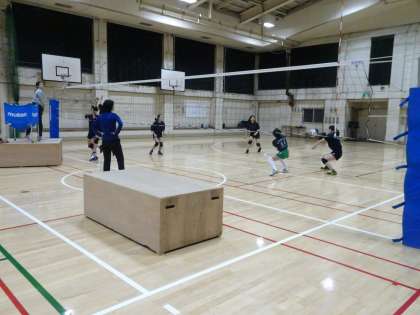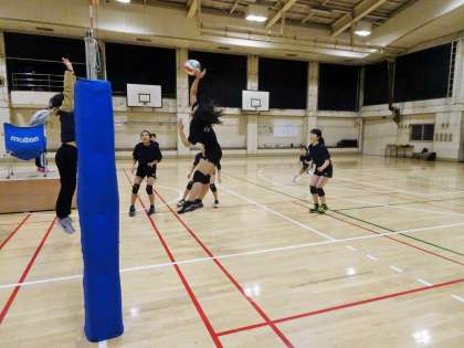 15時から体育館では女子バレーボール部が活動しています。スパイクレシーブからの攻撃の練習をしていました。(遠藤)
