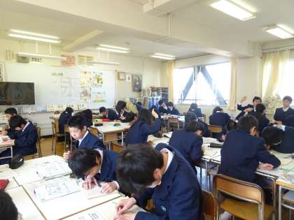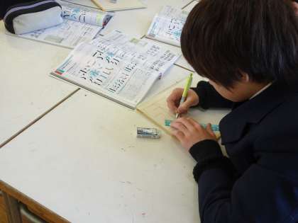 レタリングをしています。明朝体で「永」を描いていました。(遠藤)