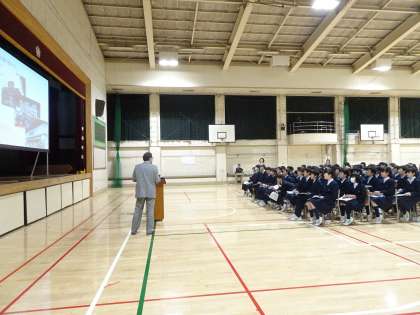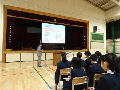2年生の総合の時間です。修学旅行に向けて校長先生の特別授業第2弾「京都編」です。伏見稲荷神社や清水寺、金閣、銀閣などについてスライドを使いながら説明していただきました。(遠藤)