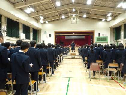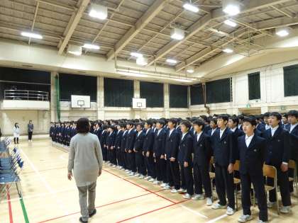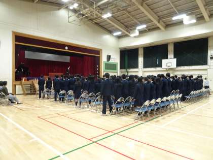 卒業式の全校練習を行いました。3年生の真剣な雰囲気が1,2年生にも伝わり、合唱の声も大きく出るようになってきました。(遠藤)
