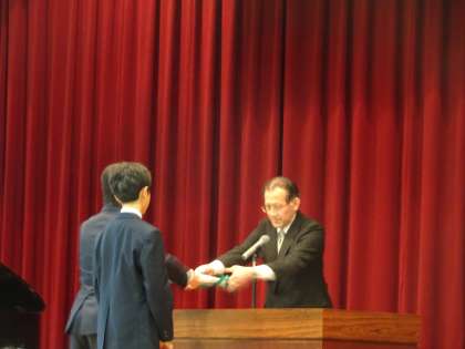 みなさん、おはようございます。今日は1年の締めくくりである修了式です。先ほどそれぞれの学年の代表生徒に修了証を渡しました。これにより今年度の全課程を修了し、4月から新しい学年、学級でのスタートになるわけです。