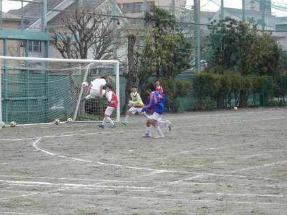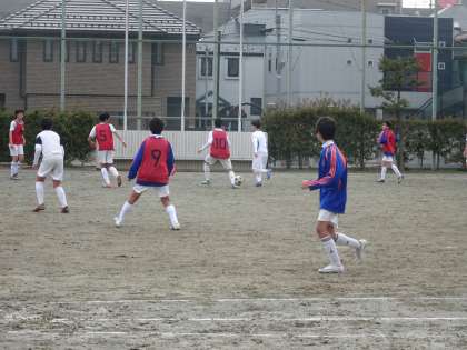 校庭ではサッカー部が活動しています。今日はゲーム形式の練習をしています。センターリングからヘディングシュートを決めていました。(遠藤)