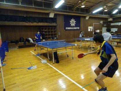 格技室では卓球部が活動しています。回り込みドラブロの練習をしていました。(遠藤)