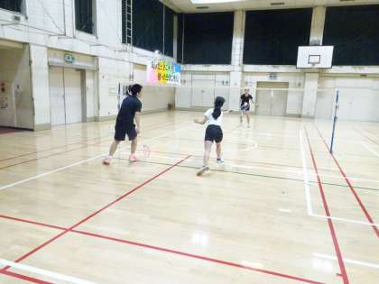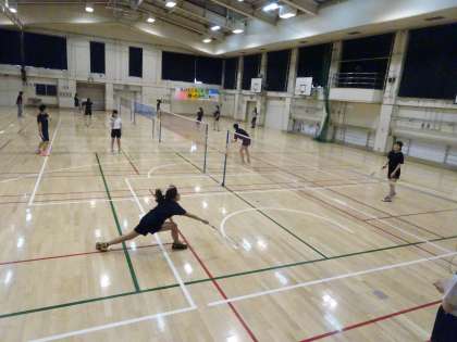 午後から体育館ではバドミントン部が活動しています。前のメニューで練習したことを次のメニューの中で使っていきましょう。(遠藤)
