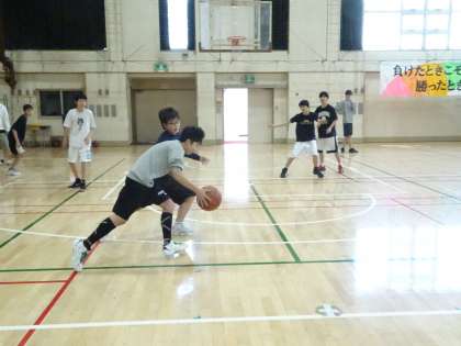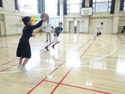 午後の体育館では男子バスケットボール部が活動しています。3対3や4対3をやっていました。リバウンドから外に開くときはきちんと止まってパスを受けましょう。(遠藤)