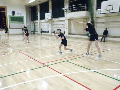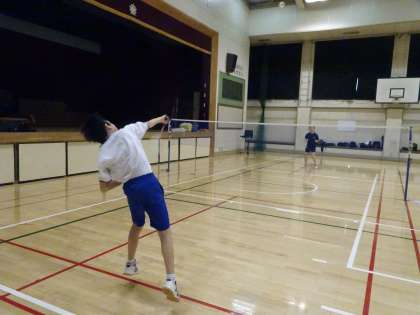 体育館では午後からバドミントン部が活動しています。前半に練習してことを試すために、シングルス、ダブルスに分かれてゲーム形式の練習をしていました。(遠藤)