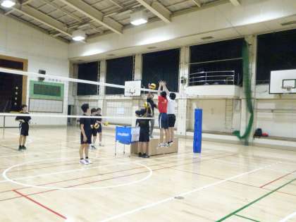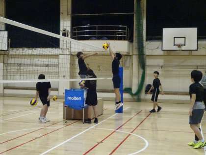男子バレーボール部が15時から体育館で活動しています。ブロックの練習をしていました。(遠藤)