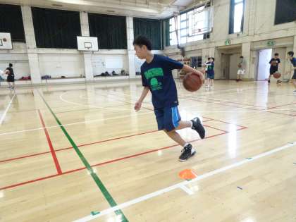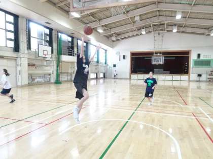 体育館ではバスケットボール部が活動しています。ドリブルやスリーメンをやっていました。一つひとつの練習が試合につながっています。試合のどの場面で使えるか考えながら練習しましょう。(遠藤)