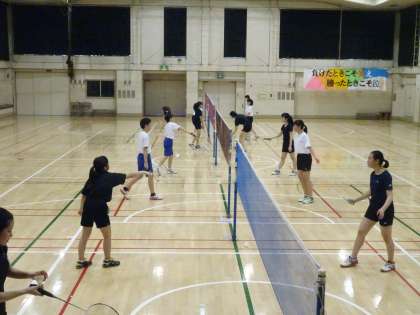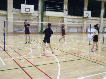 15時から体育館ではバドミントン部が活動しています。基礎打ちの練習中です。(遠藤)