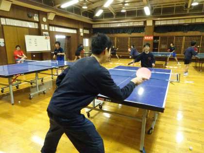 格技室では卓球部が活動しています。基礎打ちの練習をしていました。基礎を大事にしましょう。(遠藤)