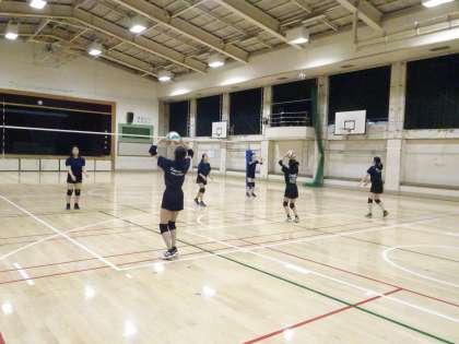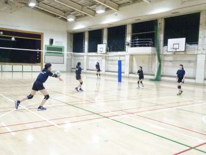 15時から体育館では女子バレーボール部が活動しています。オーバーハンドパスやアンダーハンドパスの練習をしていました。(遠藤)