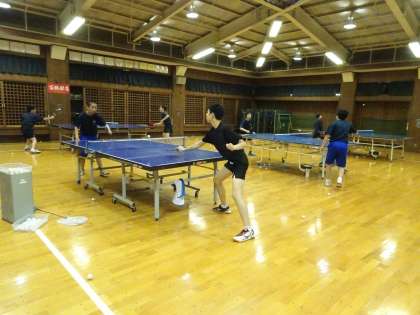 卓球部が格技室で活動しています。今日はそれぞれの課題に取り組んでいるようです。(遠藤)
