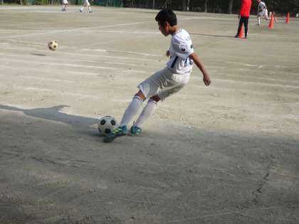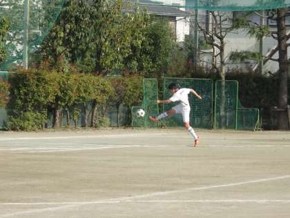 15時から校庭ではサッカー部が活動中です。サイドからのアーリークロスの練習をしています。(遠藤)