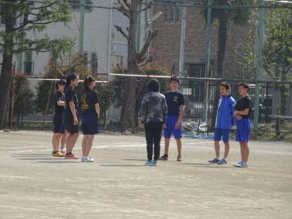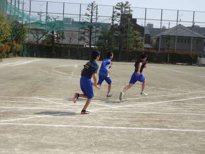 午後の校庭では陸上競技部が活動しています。スパイク流しをしているところでした。(遠藤)