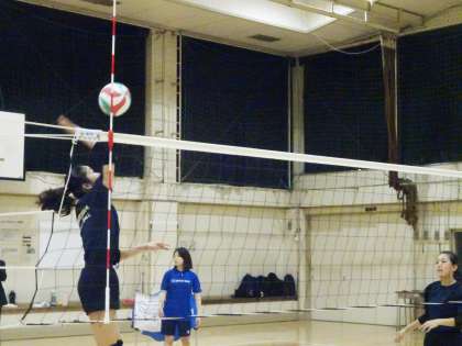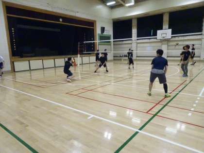 午後の体育館ではバレーボール部が活動しています。男子はスリーメン、女子はスパイク練習をしています。(遠藤)
