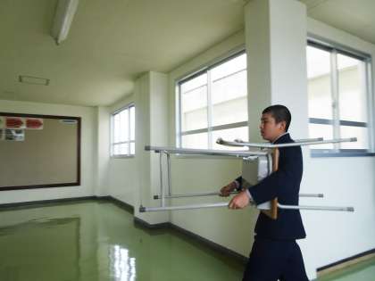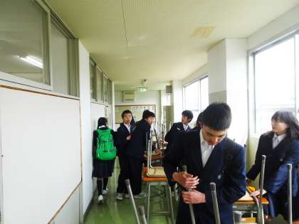 始業式のあとは、新しいクラスに自分の机といすを移動させ、最初の学活です。(遠藤)