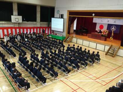 112名の新入生を迎えました。新入生呼名では、元気に返事をすることができました。入学のことばもとても立派でした。(遠藤)