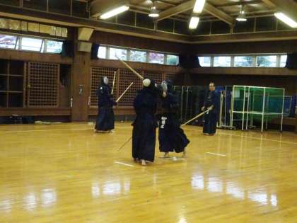 格技室では剣道部が活動しています。籠手から面を打つ練習をしていました。(遠藤)