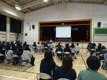 本日は保護者会です。体育館での全体会のあと、3年生は体育館、2年生は格技室、1年生は視聴覚室に移動して学年保護者会を行いました。この後は学級懇談になります。(遠藤)