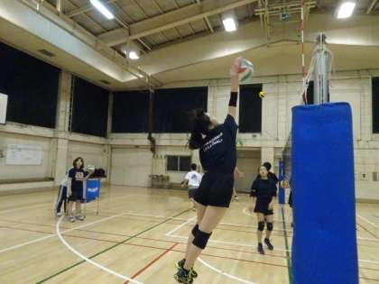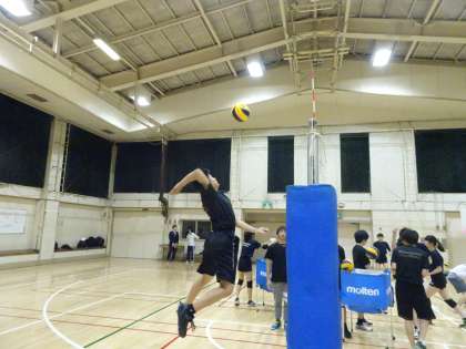 体育館ではバレーボール部が活動しています。男女ともスパイク練習をしていました。(遠藤)