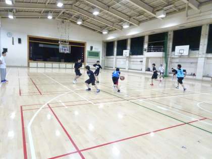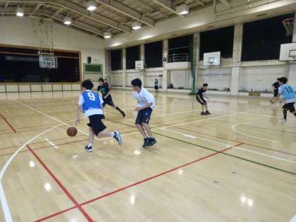 体育館では男子バスケットボール部が活動しています。2対4でアウトナンバーで攻める練習をしていました。(遠藤)