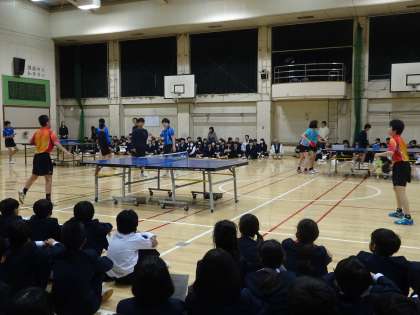今日は部活動オリエンテーションです。各部活動が1年生のために春休みから準備してきました。まず吹奏楽部、続いて卓球部の紹介です。(遠藤)