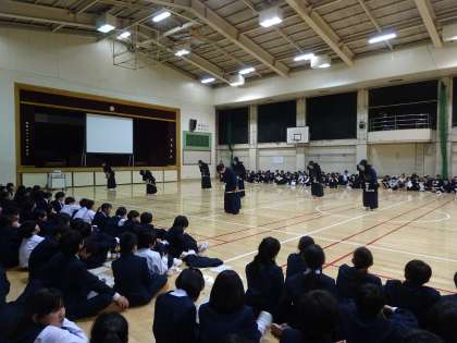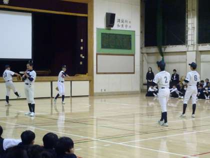 剣道部は実際に防具をつけて打ち合っていました。野球部はキャッチボールや羽打ちを披露していました。