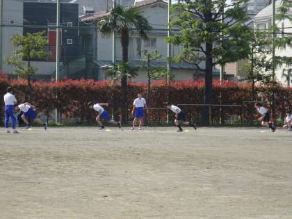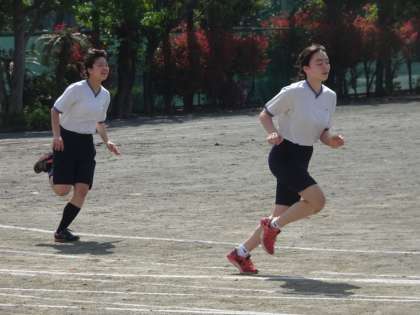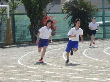 3年生の体育の授業の様子です。今日は100m走のタイムを計測していました。(遠藤)