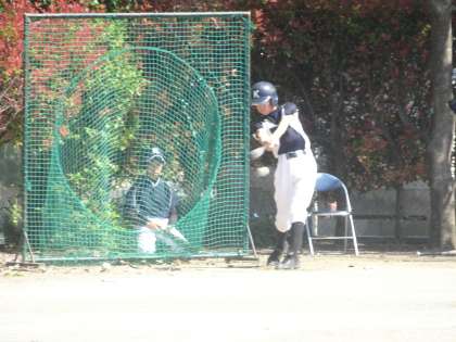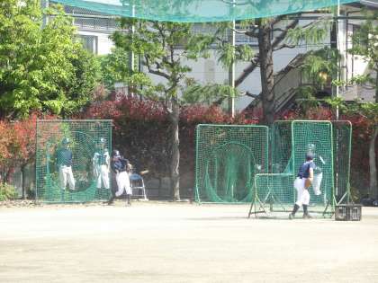 午後の校庭では野球部が活動しています。明日の公式戦に向けてフリーバッティングをしていました。最後までボールを見て打ちましょう。(遠藤)