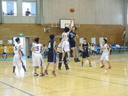 男子バスケットボール部が秋季大会に出場しています。対戦校は東京学芸大学付属世田谷中です。前半はなかなか自分たちのリズムで攻撃ができず、リードを許す展開となってしまいました。後半になって、自分たちのリズムで攻められるようになりましたが、惜しくも52対59で敗れてしまいました。気持ちを切りかえて明日から夏季大会に向けてがんんばっていきます。(遠藤)