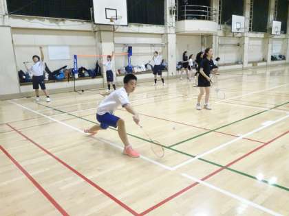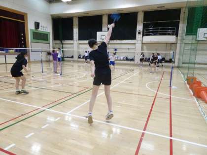 体育館ではバドミントン部が活動しています。今週末の個人戦に向けて集中して練習しています。(遠藤)