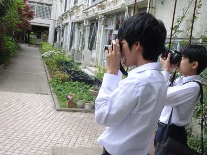 工作写真部が校内の写真を撮影していました。(遠藤)
