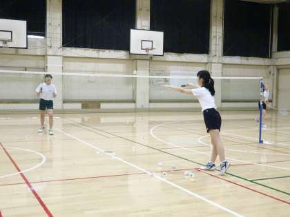 午後の体育館ではバドミントン部が活動しています。ショートサーブの練習をしていました。明日は春季大会の個人戦のようです。がんばってください。(遠藤)