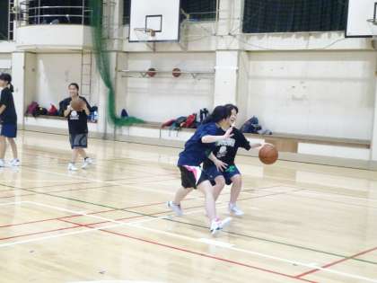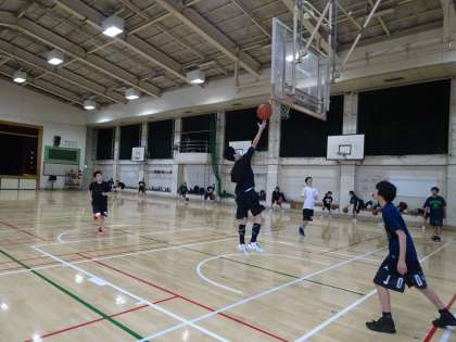 15時から体育館ではバスケットボール部が活動しています。スリーメンや1対1をやっています。(遠藤)