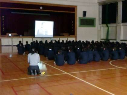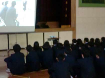 2年生は、年明けの1月25日から3日間の職場体験を予定しています。今年の2年生は、4クラスで、例年より1クラス多く、体験させていただく事業所の確保も大変です。ご協力いただく事業所の皆様、ありがとうございます。今日は、事前指導の一環として、ビデオ教材を使って服装やあいさつのしかた等のマナーの学習と3年前の2年生のまとめの発表を見て、これからの留意点やまとめのしかた、必要な準備を確認していました。