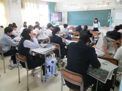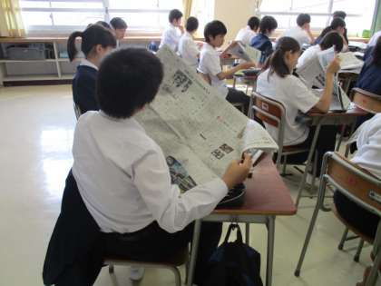 NIEタイムが今日から始まりました。朝読書の時間に新聞を読みます。生徒たちは社会面やスポーツ面等、興味がある記事や面白そうな記事を読んでいます。新聞を読む習慣を身につけられるといいですね。(遠藤)
