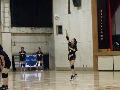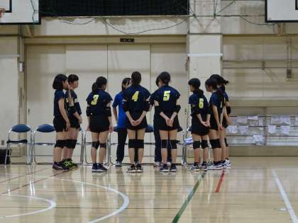 女子バレーボール部が第2ブロック春季バレーボール大会の順位決定戦を戦っています。夏季大会のシード権がかかっている試合のようです。みんなのサーブの調子が良く第1セットからリードする試合展開となり、セットカウント2−0で梅丘中に勝利することができました。(遠藤)