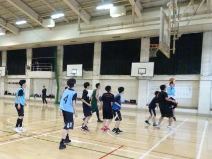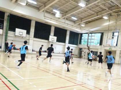 午前中の体育館では男子バスケットボール部が活動しています。5対5のゲーム形式の練習をしています。セットプレーやスクリーン、ポストプレーなど練習していることを試していきましょう。(遠藤)
