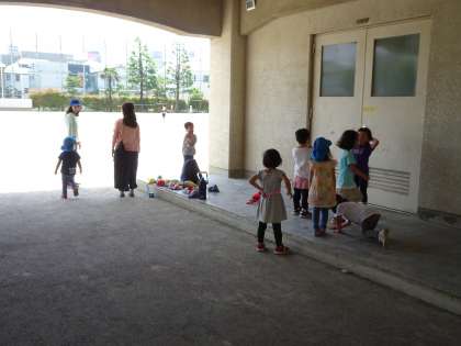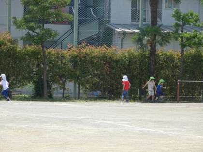 近くにあるこだま保育園の園児たちがたんち山や校庭に遊びにきていました。気温が高く日差しも強いので熱中症に注意してくださいね。(遠藤)