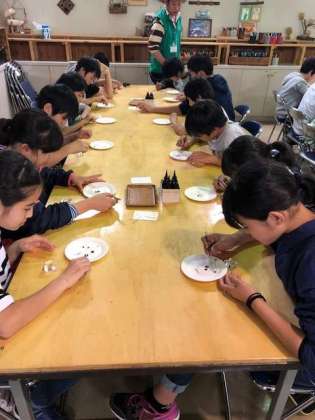 河口湖フィールドセンター。ペーパーウエイト作りに励んでいます。(多久)