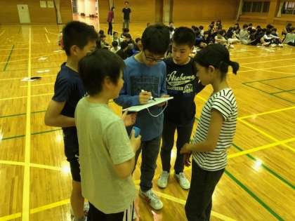 1日目の夜は実行委員が企画したレクリエーションです。クラス対抗でジェスチャークイズやイントロクイズで盛り上がりました。(多久)