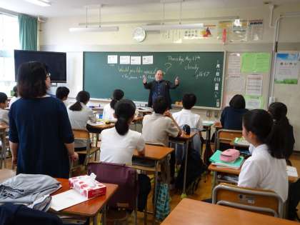 3年生の英語の授業の様子です。「Would you like 〜?」について学習しています。ALTの先生と楽しく英語でコミュニケーションをとっていました。(遠藤)