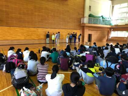 閉園式。アカペラで校歌を歌い、園の方にお礼をしました。そして、これまで移動教室を進めてくれた実行委員に拍手を送りました。(多久)