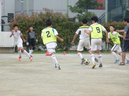校庭ではサッカー部が活動しています。プレスをかけることや逆サイドに展開する練習をしていました。(遠藤)
