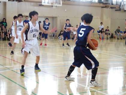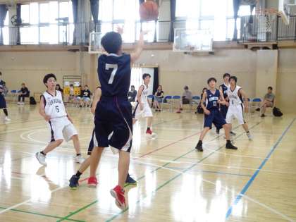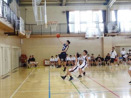男子バスケットボール部は深沢中に練習試合に来ています。ディフェンスからリズムをつくり、自分たちのペースでオフェンスをすることできました。ゴール下のシュートやフリーでのレイアップシュートを外す場面があったので、簡単なシュートを確実に決められるようにしましょう。(遠藤)