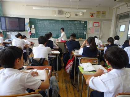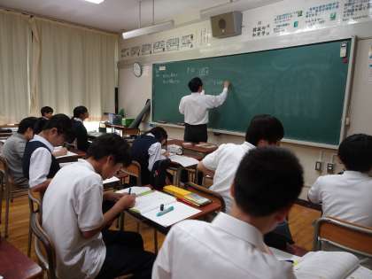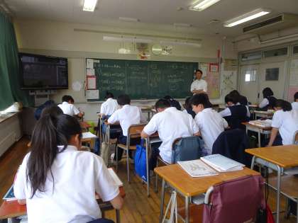 1年生の数学の授業の様子です。少人数授業が展開されています。正負の数の減法について学習しています。(遠藤)